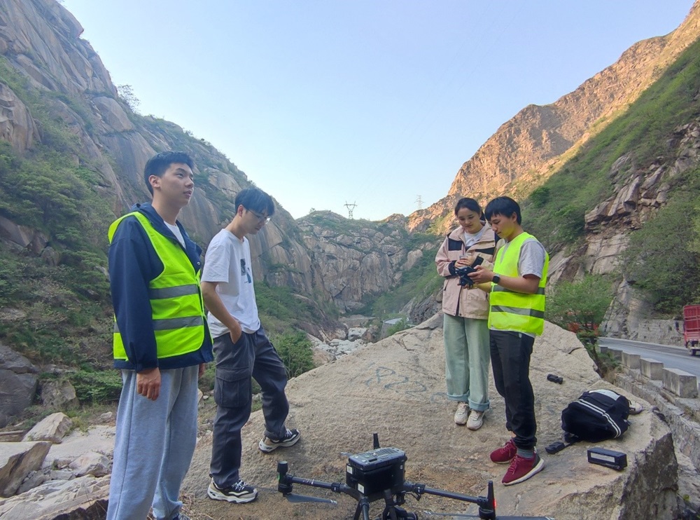 A group of four PhD students, including Han Jiali and Liu Qing, and master's students, Wu Danyang and Wang Yao Yao, from Prof. Zhang Wen's group at Jilin University, went to the Qinling area of Weinan City, Shaanxi Province, to carry out the field work of "Structural Image and Data Acquisition of Rocky Slopes in the Qinling Mountainous Region". A total of 8 UAV models and 3 thermal infrared models were acquired.